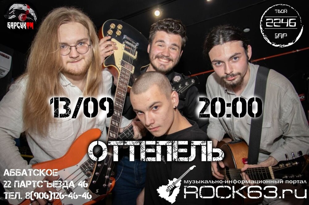 суббота, 13 сентября 2025, 20:00 бар «Аббатское» на 22 Партсъезда Выступление группы «Оттепель». Вход свободный.