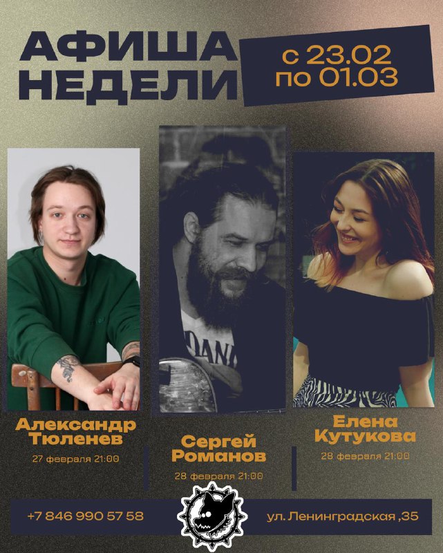 суббота, 28 февраля 2026, 21:00 бар «Нора-конура» на Ленинградской Атмосферный вечер с живой музыкой и уютной обстановкой. Вход свободный.